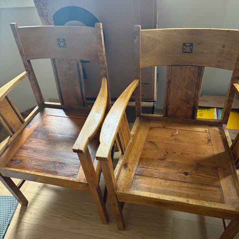 Har 6 stoler kun 4 lave på bildet,har flyttet så står 2 igjen i gammelt hus.