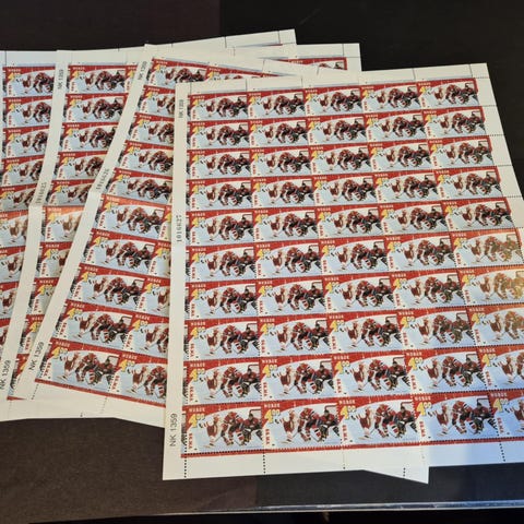 4 ark postfriske frimerker, 50 merker på hver ark, hver frimerke har pålydende 1,25 kr