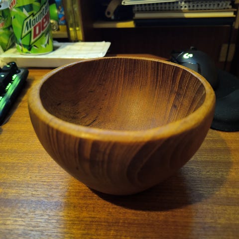 Nydelig fin teak bolle. I pen stand bortsett fra merkene som vist på bildet. Det går an å polere de vekk med bivoks e.l.