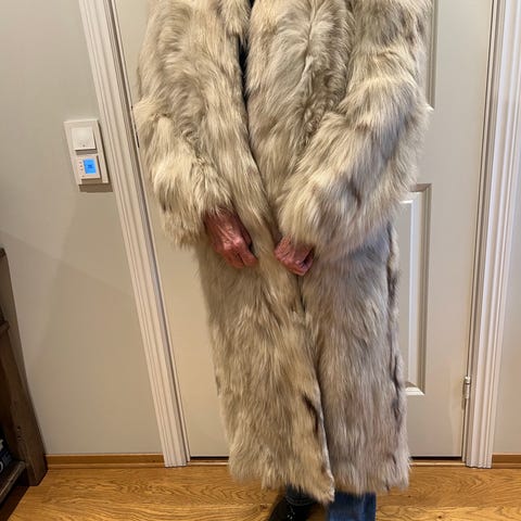 Ulvekåpe fra Oslo Bundtmakeri Forretning selges. Lite lukt, brukt av 1 eier, og av høy kvalitet. Størrelse ca M. Avbildet 169 cm høy.
