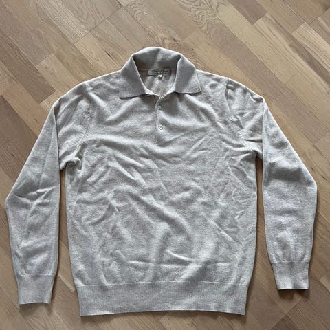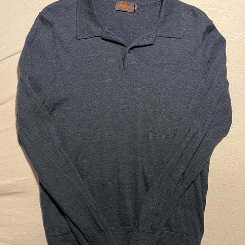 Fantastisk genser i 100% cashmere. Veldig pen blåfarge, litt lysere og dusere enn på bildet. Str L, men passer mer som en M. Nypris over 3000.