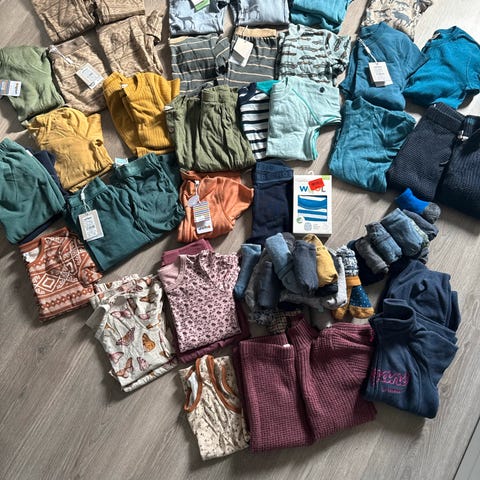 Pakke med 14 ullplagg. Det meste er Name It, men også noe Reflex, Joha og Hust & Claire.