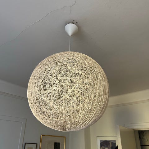 Rundt taklampe fra lampehuset med spotter selges. Den har totalt 3 spotter og det følger med 1 lyspære.