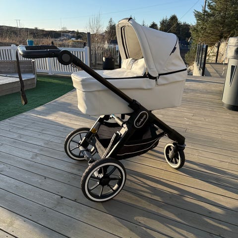 Vognen kan slås ut til tvillingvogn, det følger med en handlekurv til når vognen bare brukes med en del