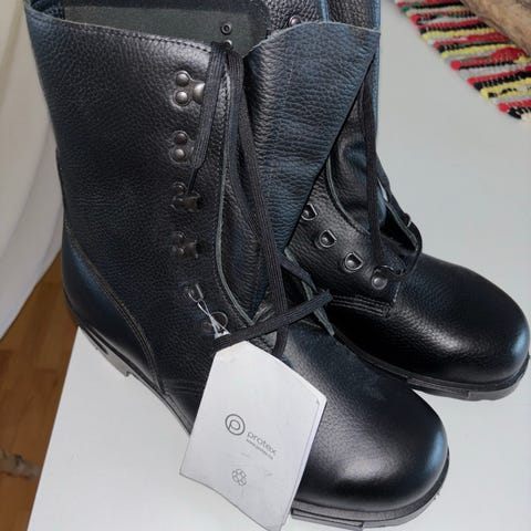 Helt ubrukte støvler som brukes i førstegangstjenesten. Følger med lisser og såler.