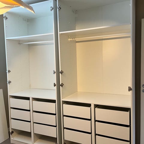 Modul 1: 100 x 60 x 236cm med dobbeldør. 4 skuffer, hengestang, hylle oppe og midt på