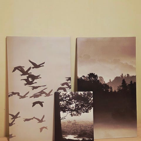 Som ny. Kun to stk er hengt opp i en kort periode. Kjøpt for 2 år siden på ikea for ca. 800 kr. Alle er lerret bilder. Ligger fortsatt i original forpakning. Utgått vare.