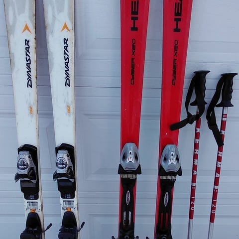 Pent brukt: 2 par slalomski lengde 130 og 149cm og skisko 298mm (Eu 38/39)