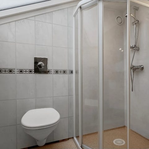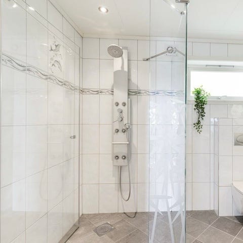 Dusjløsning med dusjhjørne i glass og veggmontert dusjarmatur. Løsningen består av glassvegger med skyvedør eller svingdør,. Passer til montering i hjørne på bad med sluk
