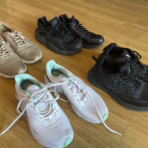 Jogge sko og et par vinter sko selges. Selges samlet da alt bare skal bort. Str 38, vinter skona er str 40, men litt små i størrelsen. Selges samlet for 350,-