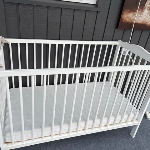 Sprinkelseng selges, pent brukt, kun et par merker i hjørnene som vist på bildet. Står lagret tørt i boden.