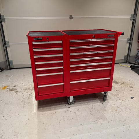 Vognen har gummiert topplate med oppbrettkant. Dette gjør at bordet kan enkelt trilles rundt uten at verktøyet detter på gulvet.