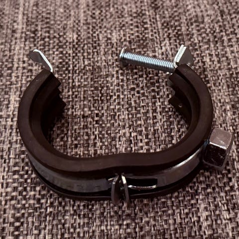27 stk Hilti MP-LHI rørklammer 1 1/4" M8. Rørklammeret er beregnet for feste av rør med nominell størrelse 1 1/4". Det har gummiert innside for demping og bedre feste, samt metallbeslag med skrue og mutter for montering. Passer til gjengestag eller bolt med M8-gjenge, typisk brukt til VVS- og rørinstallasjoner i tak eller på vegg.