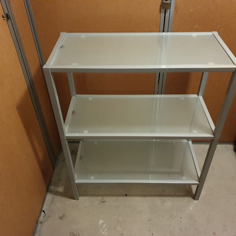 Fire hjørnehyller og en hjørnestolpe til Ivar-hyller fra IKEA. Hyllene passer sammen med hyller som er 30 cm dype. Mål 56*56*30.