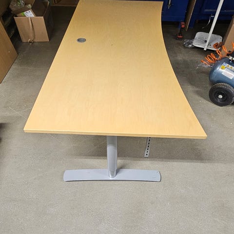 Benkeplate / Skrivebord med IKEA bordplate i heltre eik og rette ben i metall. Platen / Bordet har tykkelse 3,5 cm, god dybde (62 cm) og bredde (186 cm) som gir plass til flere skjermer, laptop og annet kontorutstyr. Under benkeplaten er det montert to kabelskinner for føring av ledninger. Egnet som benkeplate til kjøkken, eller arbeidsbord eller hjemmekontorbord i kontor, arbeidsrom eller stue.