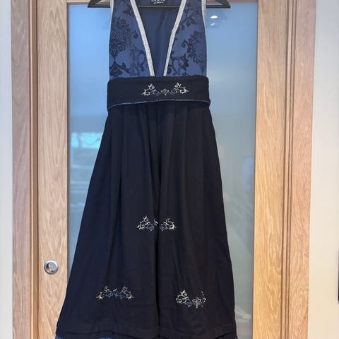 Har også tilsvarende kjole i blå som vist på det ene bilde i annonsen og den er str. 140/10 år.