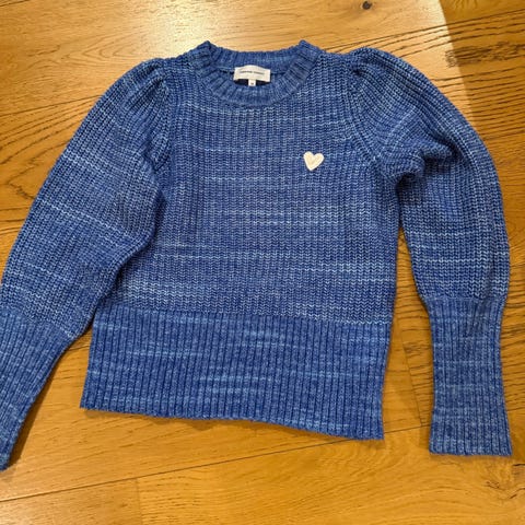 Fabienne Chapot genser i størrelse XS. (Passer også s) Genseren er i ullblanding med merinoull og babyalpakka, med rund hals og lange ermer. Fargeinntrykket er melert lys base med små flerfargede hjerter som mønster. Passer til dame.