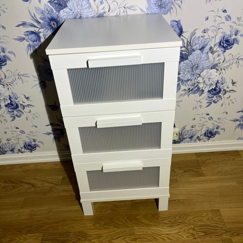 IKEA MALM kommode i hvit utførelse med seks skuffer. Kommoden har to mindre skuffer øverst og fire større skuffer under, som gir god oppbevaringsplass. Overflaten er glatt og ensfarget, og møbelet har et moderne, enkelt uttrykk som passer inn i de fleste rom som soverom, gang eller stue. Egnet til oppbevaring av klær, tekstiler og diverse småting. kan leveres mot tillegg etter avtale.