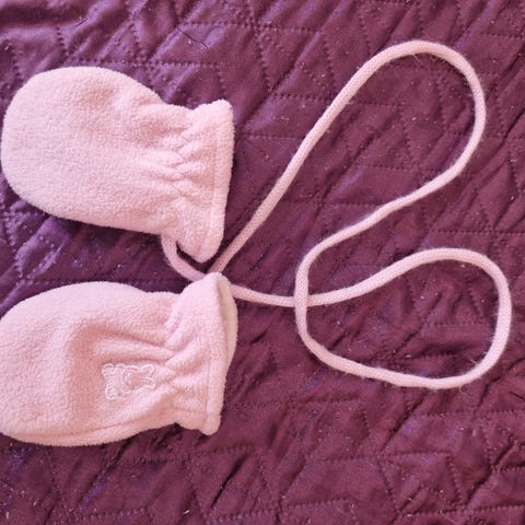 Gode og varme votter, lue og skoposer. Matcher fint til dress fra annonse med kode 451080429. Luen er ikke brukt da den ble litt for stor til min frøken.
