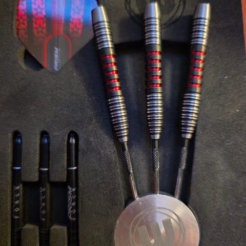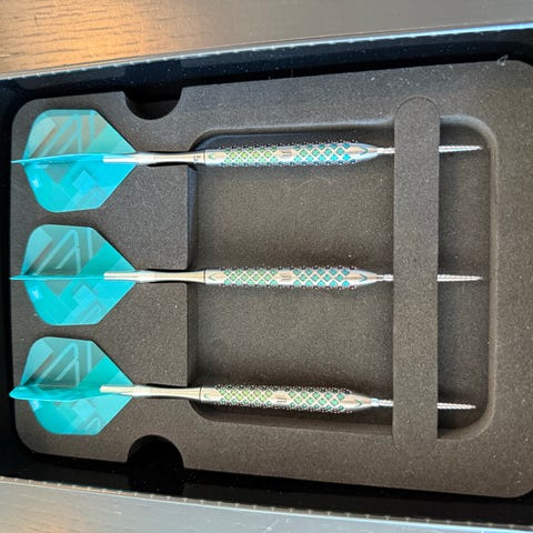 Hei, selger helt nye Target Japan Black Marque renegade 4.0 25 gram dartpiler, kommer i orginal emballasje med alt tilbehør. Tar gjerne vipps så sender jeg med posten sporing for 76kr på min regning.