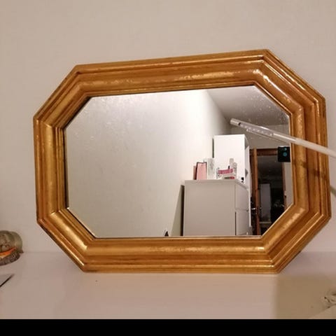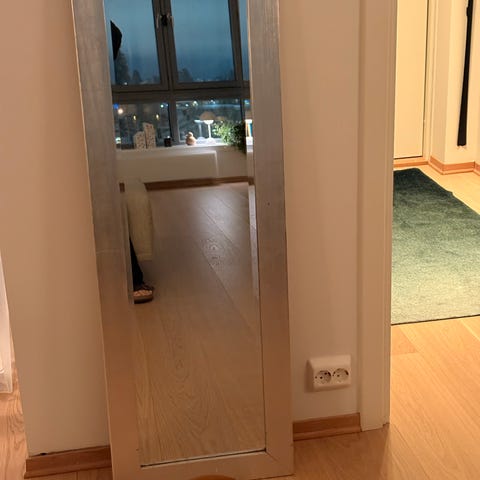 Speilet selges rimelig pga liten skramme. Det er en liten sprekk på ca 2 cm nederst i et av hjørnene. Lite synlig, men kommer jo an på hvor høyt speilet plasseres. Jeg har ikke bruk for det lenger fordi jeg har garderobeskap med speildører. Størrelse: 120 x 48 cm. Hentes på Grünerløkka/Birkelunden.