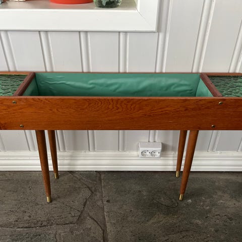 Hel og fin teak kommode selges. Noen få bruksmerker, men disse forsvinner fort med en runde teakolje. Alle 6 skuffer glir godt inn og ut. 5 skuffer er rene og som nye. En har noen flekker på innsiden. Nøkkel følger med. Må hentes.