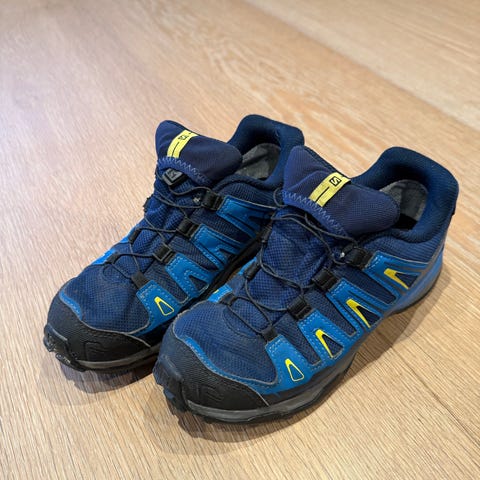 Salomon XA Pro tursko for barn, unisexmodell i størrelse 36. Skoene er i blå farge med kontrastdetaljer. Overdelen er i tekstil og syntetisk materiale med forsterkninger på tå og sider. Modellen har hurtigsnøring/strammesnor og polstret hælkappe for bedre komfort. Yttersålen har grovt mønster som gir godt grep på ulike underlag. Egner seg til hverdagsbruk og aktiviteter ute.