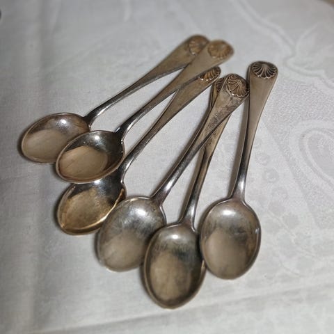 Antikke 6 små sølvteskjeer i 830S sølv – fra 1916