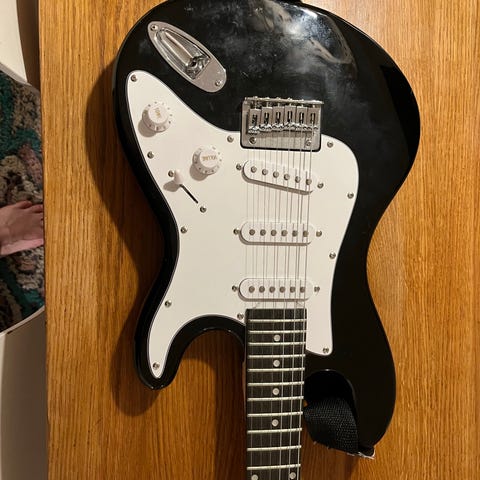 Brukt Morgan elgitar med bag og kabel. Gitaren er veldig fin nybegynner gitar. Den er kjøpt på 4Sound på Gjøvik for 3800 kr ny. selger for 2200kr den har et lite hakk på hodet, men det påvirker ikke hvordan den fungerer. Gitarbagen er en stoff bag med en reim. Send melding for mer info. Åpent for bud.
