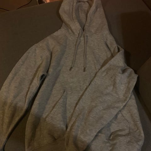 H&M Loose Fit hettegenser for herre i størrelse M. Genseren er brun og laget i bomull. Modellen har hette med snøring og ribbestrikkede kanter nederst og på ermene. Passer til hverdagsbruk og som et lag over t-skjorte eller under jakke.