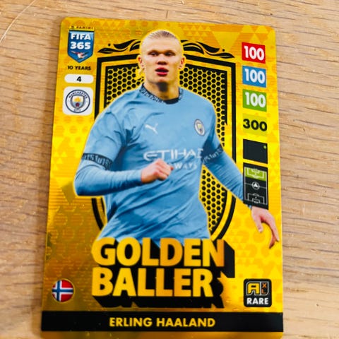 Panini FIFA 365 International Star samlekort med fotballspilleren Erling Haaland. Kortet er en del av FIFA 365-serien fra Panini og har motiv på begge sider. Egnet for samling og bytting av fotballkort.
