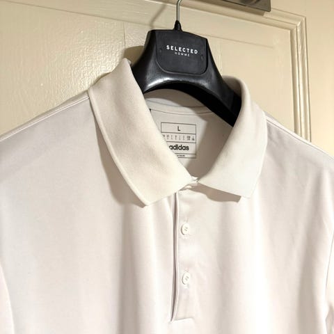 Adidas pique for herre i størrelse L. Piqueskjorten er svart og består av 100 % polyester. Perfekt som golftrøye! Svært lite brukt og i god stand.