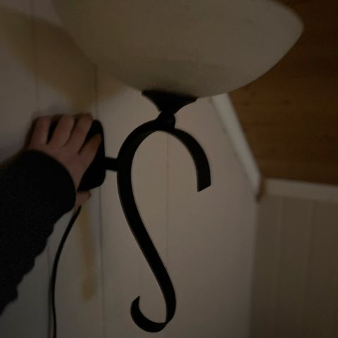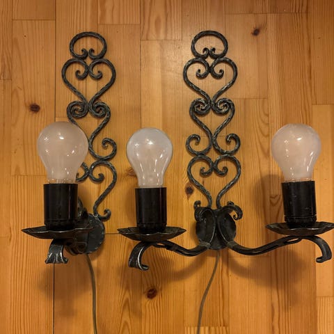 Vegglampett i smijern for to lyspærer selges. Selges uten skjermer og lyspærer.
