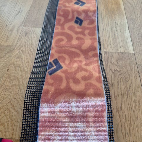 Black Diamond skifeller i svart og grått mønster. Fellen leveres med tuppfeste og justerbar hælrem, samt oppbevaringspose i grått med oransje glidelås. Egnet for bruk på ski der det er behov for feste ved toppturer eller annen skigåing med feller. Lengde ca 165 cm