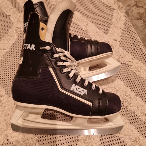 Svært lite og pent brukte Kosa All Star 400 ishockeyskøyter i størrelse 39. Skøytene har svart og grå overdel med snøring og polstret pløse for økt komfort rundt vrist og ankel. Blad i metall egnet for ishockeybruk på isbaner. Passer både til bruk på organiserte treninger og fritidsskjøyting på is.
