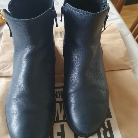 Ecco støvler i størrelse 39.Ankelhøye støvler i sort skinn med hæl og dekorative remmer rundt ankelen. Glidelås på innsiden for enkel av- og påtaking. Såle med struktur for bedre grep. Egnet som hverdagssko eller til penere antrekk for dame.