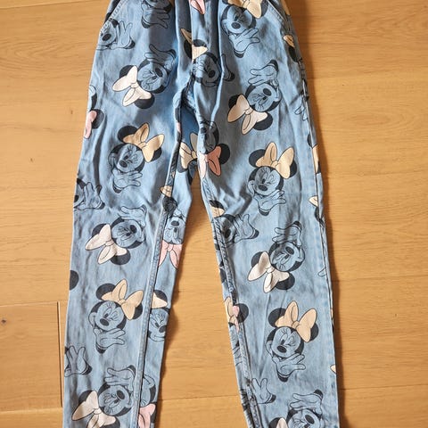 Kul bukse med Minni Mus i str. 140.