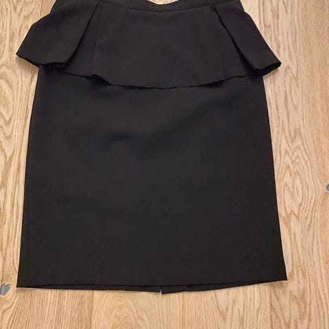 Floyd sett med genser og skjørt for dame i størrelse L. Sett i flerfarget mønster med langermet genser og knelangt skjørt. Genseren har rund hals og ribbekanter. Skjørtet er rett og figurnært. Passer til både hverdag og enklere penbruk.