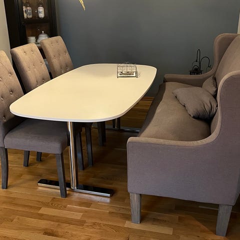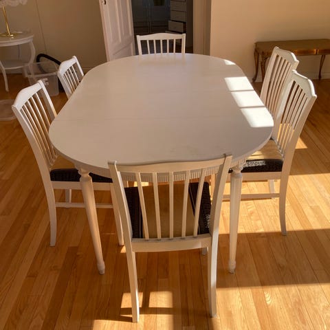 Jeg gir bort stoler. De har trekk, men det kunstige skinnet nederst er helt slitt