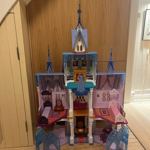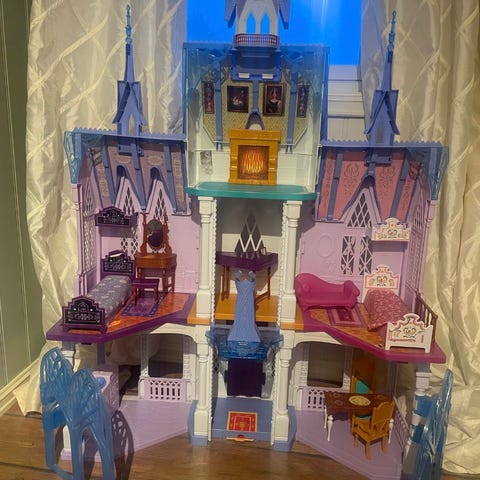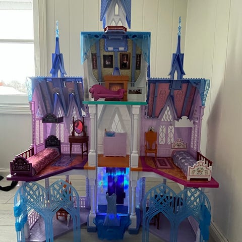 Frost dukke hus. Den er pent brukt, det mangler par trappe trinn,skruen syntes jeg var veldig tynn så noen steder er den litt knekt men kjøper man nye skruer så går det helt fint.