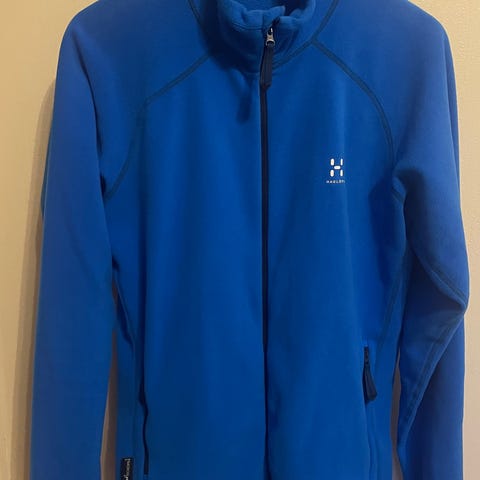 Haglöfs fleecejakke for herre i størrelse L. Jakken har hel glidelås foran og høy krage. Størrelse L.