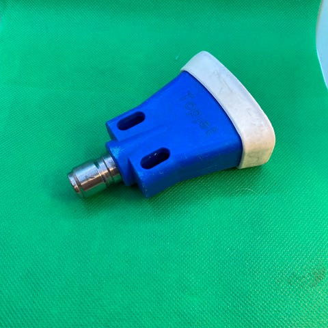 Denne passer ikke de nyeste mobil-laderne til Tesla, men forrige generasjon som fulgte med model S og X på siste halvdel av 2010-tallet. (Litt usikker på når Tesla gikk over til nyere UMC-modell).