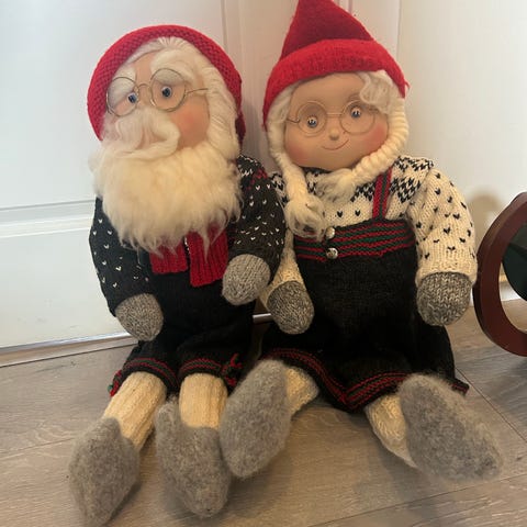 2 kule nisser selges samlet for 200 kr . Kan sendes med post nord for 70 kr eller posten for 140 kr eller fiks ferdig . Eller kan hentes etter avtale . Den ene knappen på kjole på sys på igjen . Ellers i bra stand . Se siste bilde ang . Knapp .