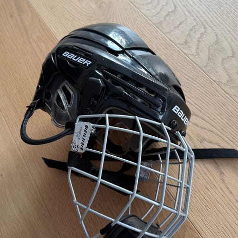 Bauer ishockeyhjelm med gitter i hvit farge. Hjelmen har justerbar passform og ventilasjonshull i skallet. Gitteret er et Bauer Profile II S/P ansiktsgitter i metall, HECC-sertifisert for bruk i ishockey. Egnet som beskyttelsesutstyr til ishockey og lignende isidretter der hjelm med ansiktsbeskyttelse er påkrevd.