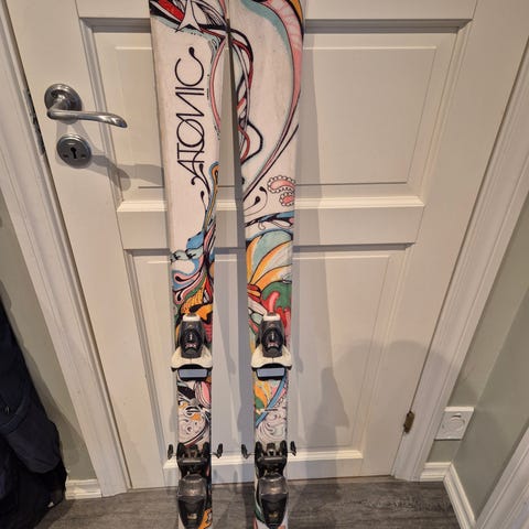 Atomic Race 8 alpinski til salgs. Lengde 130cm, passer til skisko inntil 286cm lengde.