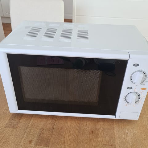 "OBH Nordica mikrobølgeovn i hvit utførelse. Modellen har mekaniske dreieknapper for innstilling av effekt og tid. Innvendig er det roterende glassplate. Egner seg til oppvarming og tining av mat i hverdagen. Enheten er frittstående og plasseres på benk eller annen stabil overflate."