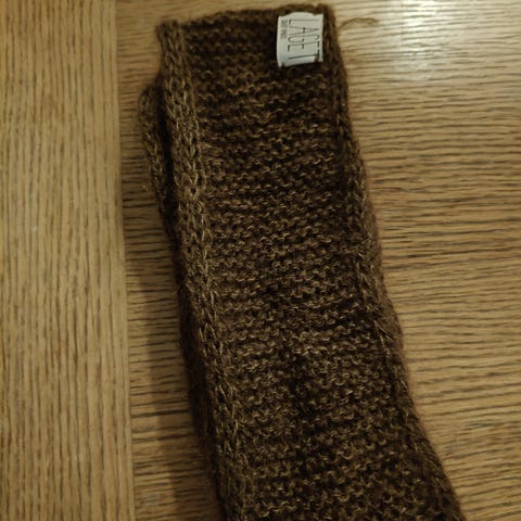 Hjemmestrikket Sophie Scarf i 100 % kashmir garn 🤎 Fargen er mørk brun.
