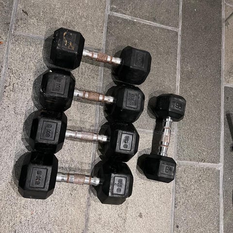 Manualer små hantler i plast i flere farger. Egner seg til lett styrketrening, opptrening og hjemmetrening. Passer godt til øvelser for armer, skuldre og overkropp. Kan brukes både innendørs og utendørs.