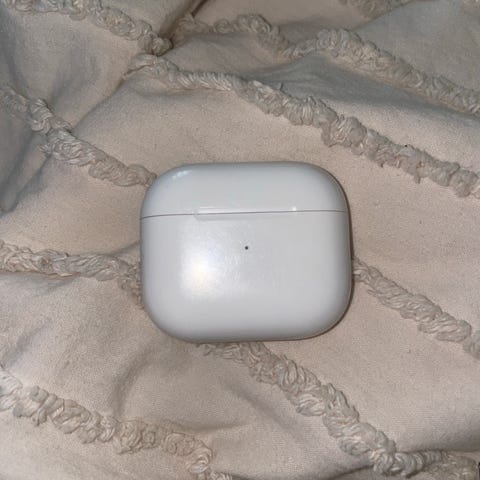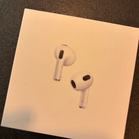 Selger mine AirPods 3 (A2565). Kjøpt i 2023. De ble brukt i 1 års tid ca. Noen bruksmerker på etui. Lyd og batteri fungerer greit.
