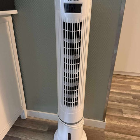 Otermo tårnvifte i hvit utførelse. Viften har slankt, frittstående tårndesign som tar liten gulvplass. Betjeningspanelet på toppen gir tilgang til flere funksjoner, blant annet ulike viftehastigheter og moduser. Nederst på foten er det en beholder med nivåindikator, som kan brukes til vann for kjølefunksjon. Egnet for bruk innendørs i rom der man ønsker bedre luftsirkulasjon og avkjøling. Må hentes.